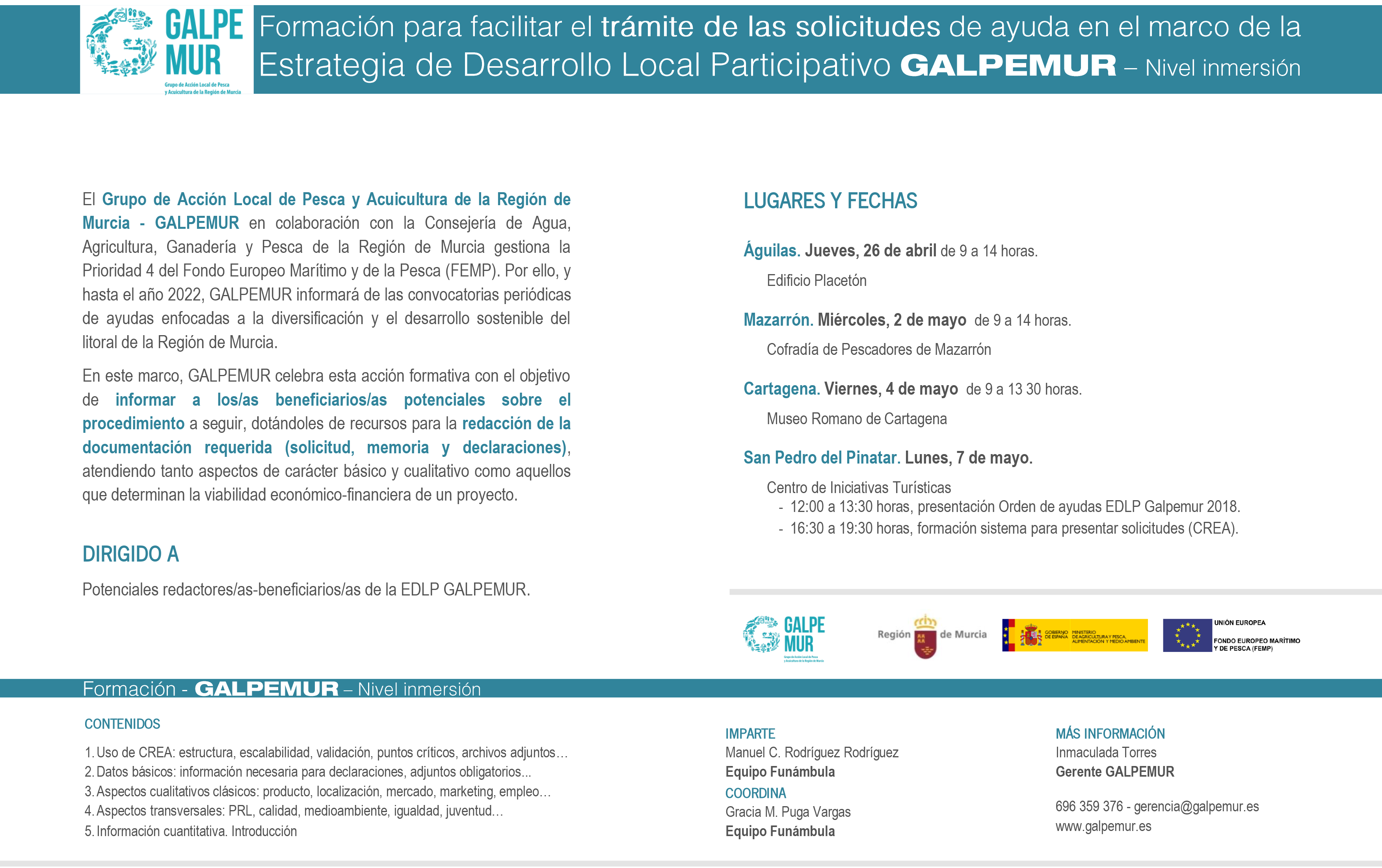 23 Abr Programa_Presentaciones y Curso CREA by GALPEMUR in Comments programa de charlas sobre ayudas Galpemur