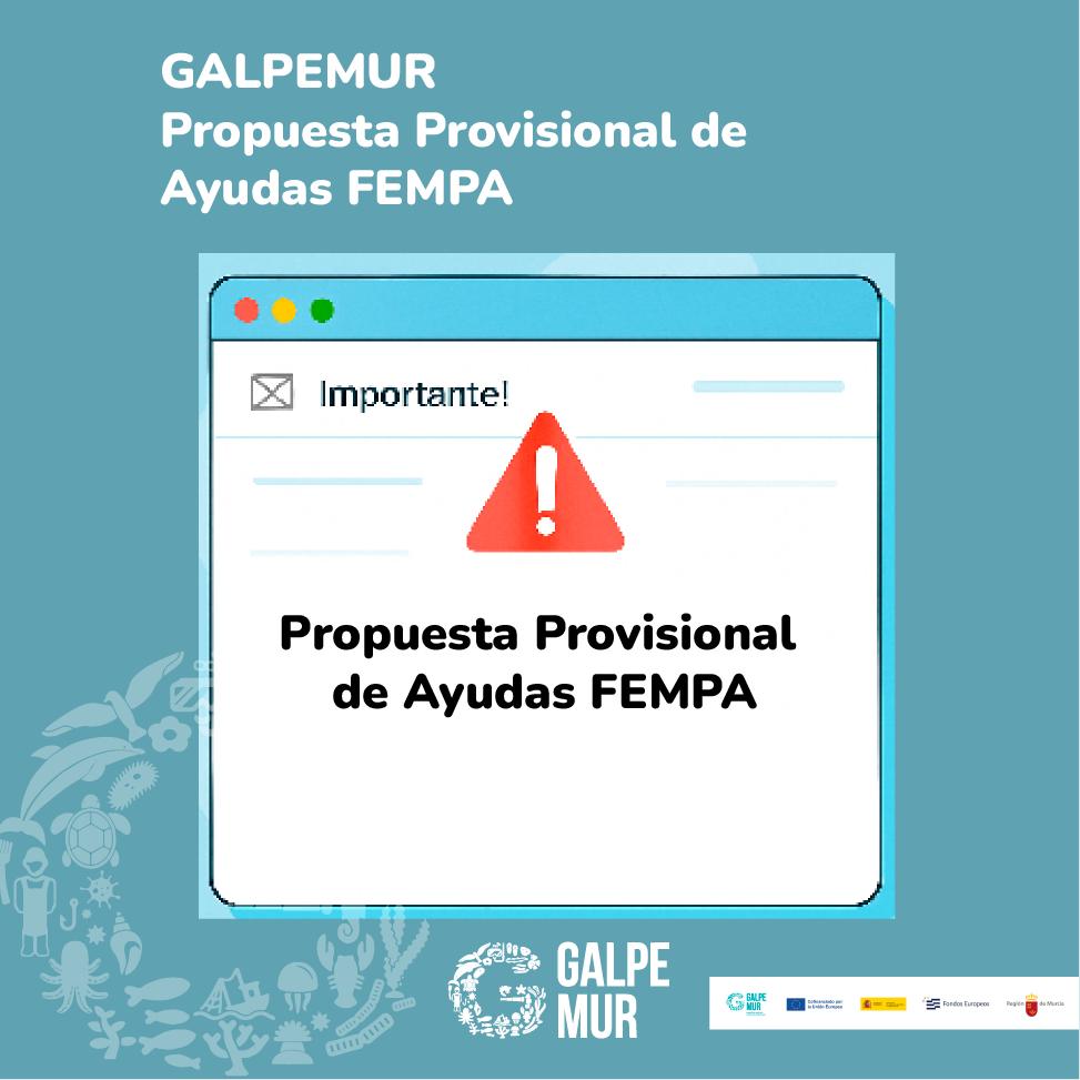 La Dirección General de Producción Agrícola, Ganadera y Pesquera, junto a GALPEMUR, ha emitido la Propuesta Provisional de Resolución para las ayudas del Fondo Europeo Marítimo, de Pesca y de Acuicultura (FEMPA), Prioridad 3: Promover una economía azul y el desarrollo de las comunidades pesqueras y acuícolas.
